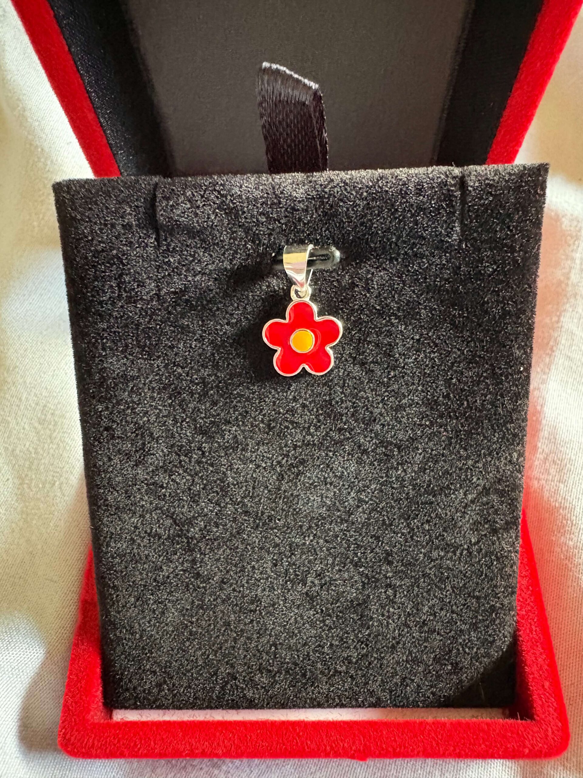 Colgante flor roja esmaltada plata 925