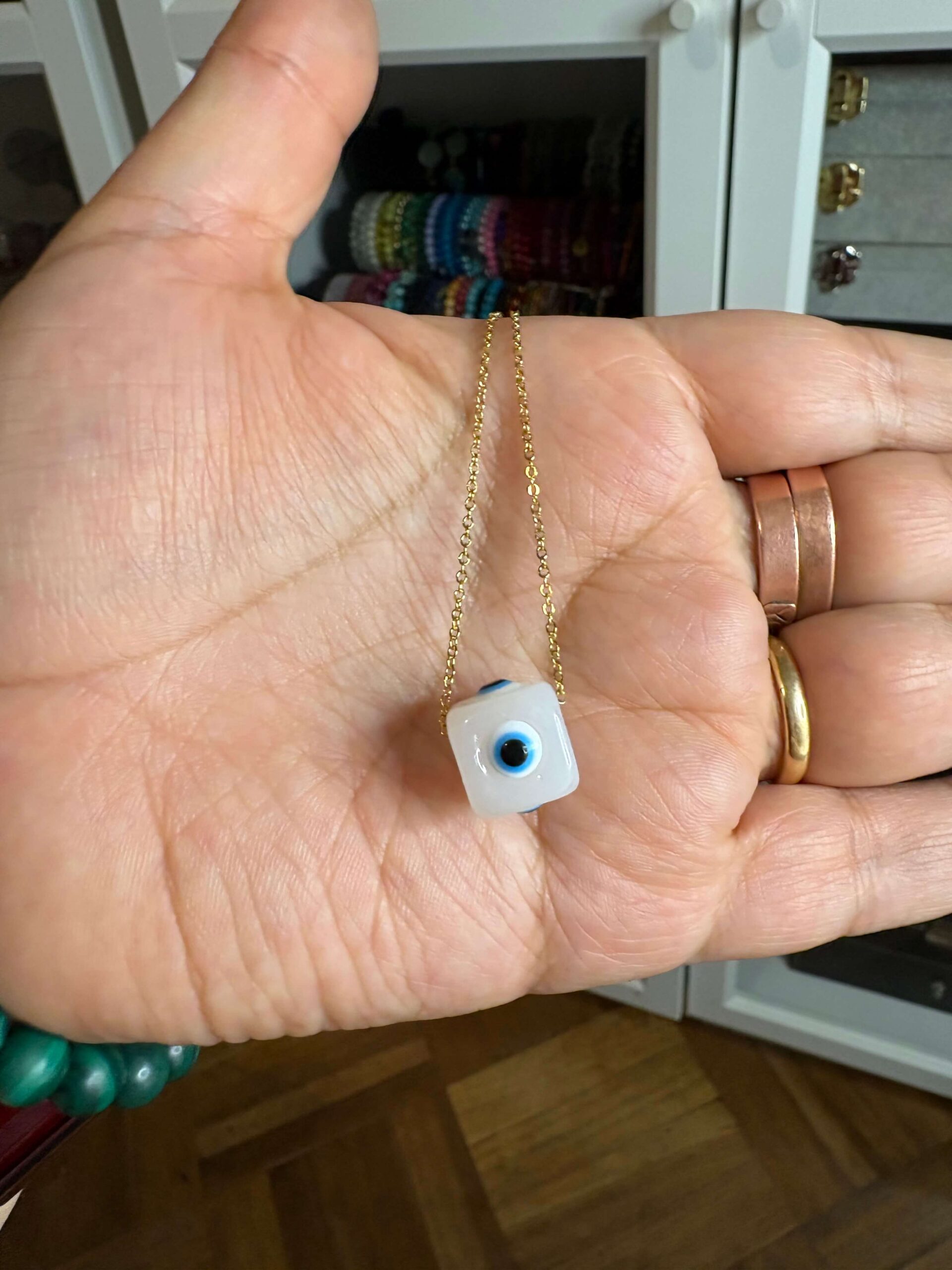 Collar acero ojo turco cubo blanco